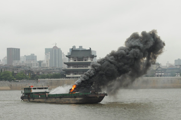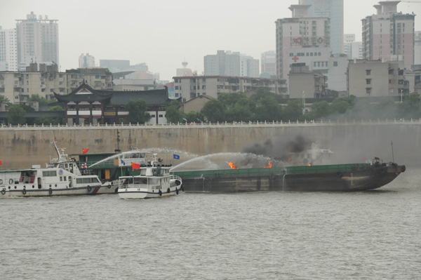 | 8月26日上午,以“關(guān)注航行安全、保護水域清潔、共建平安湖南”為主題的“2010年湘江水域水上搜救演習”在湘江長沙杜甫江閣水域舉行。25艘船舶、近300人參加了人命救助、船舶救援、船舶消防滅火、水域油污染控制等搜救演習行動。這是我省首次舉行大型內(nèi)河水上搜救演習。