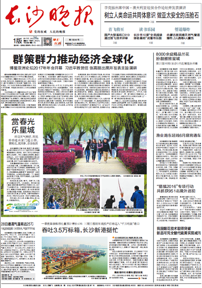 長沙市第十三次黨代會上,省委常委、市委書記易煉紅提出長沙將建設(shè)全國中心城市,全力打造“三個中心”,長沙新港作為水運(yùn)交通樞紐,對于我市打造國家交通物流中心意義重大,港口經(jīng)濟(jì)不斷升溫。今年一季度,港口生產(chǎn)形勢步步看漲,生產(chǎn)數(shù)據(jù)屢屢刷新。一季度共完成港口吞吐量166.5萬噸,其中集裝箱吞吐3.65萬標(biāo)箱,較去年同期相比增長44%,件雜散貨吞吐93.5萬噸,較去年同期相比增長60%。 眾所周知,航運(yùn)業(yè)是經(jīng)濟(jì)運(yùn)行的晴雨表,在全球經(jīng)濟(jì)下行壓力和航運(yùn)業(yè)一季度內(nèi)傳統(tǒng)淡季的背景下,借助“一帶一路”和長江經(jīng)濟(jì)帶的國家戰(zhàn)略,長沙新港一季度強(qiáng)勢“亮相”,吞吐量逆勢增長,給全市的經(jīng)濟(jì)指標(biāo)注入了一股亮眼色彩,各大媒體爭相報道。3月下旬,《長沙晚報》、《湖南日報》、湖南衛(wèi)視、湖南經(jīng)視、紅網(wǎng)等主流媒體相繼到港采訪,湖南長沙新港有限責(zé)任公司董事長、總經(jīng)理唐忠良接受采訪。 “今年港口來勢很好,一季度,港口件雜散貨、集裝箱吞吐量雙雙創(chuàng)了新高。件雜散貨一季度吐吞量93.5萬噸,同比增長60%;集裝箱吞吐3.65萬標(biāo)箱,同比增長44%。其中,港口集裝箱貨物以外貿(mào)為主,主要通過上海港運(yùn)至世界各地,一季度集裝箱量的迅猛增長,反映出港口物流對外向型經(jīng)濟(jì)發(fā)展的重要助推作用。”唐總興奮地向記者介紹道。 據(jù)統(tǒng)計,2016年長沙新港共完成貨物吞吐量614萬噸,同比增長12.4%,創(chuàng)歷史新高。根據(jù)今年港口貨運(yùn)吞吐量的強(qiáng)勁增長勢頭,今年有望再創(chuàng)歷史新高,特別是港口集裝箱,計劃突破14萬標(biāo)箱,有望達(dá)到15萬標(biāo)箱,創(chuàng)歷史新高。 港口生產(chǎn)熱火朝天,三期建設(shè)馬不停蹄。唐總介紹道:“今年4月,新港三期工程南片區(qū)將正式進(jìn)場施工,預(yù)計2018年底三期工程全部建成并投入運(yùn)營,預(yù)計2018年,長沙港霞凝港區(qū)三期工程將竣工投產(chǎn)。”屆時,長沙新港年吞吐量將達(dá)到1200萬噸,邁入千萬噸級港口行列。長沙港將實(shí)現(xiàn)集進(jìn)出口集裝箱、大宗件雜貨、滾裝、散貨裝卸運(yùn)輸于一體,“水鐵”無縫對接的現(xiàn)代化“黃金港口”,成為我市打造“交通物流中心”不可或缺的物流公共平臺。 3月25日,湖南經(jīng)視“經(jīng)視觀察”欄目播出新聞專題節(jié)目《打通這一公里 企業(yè)可省千萬元》,重點(diǎn)報道長沙新港“鐵水聯(lián)運(yùn)”項(xiàng)目;3月26日《長沙晚報》A01版、28日《湖南日報》頭版分別以《吞吐3.5萬噸標(biāo)箱,長沙新港挺忙》和《長沙新港好繁忙》為題,進(jìn)行大篇幅圖文報道,《掌上長沙》、《新湖南》客戶端分別對新聞進(jìn)行了轉(zhuǎn)載。長沙新港在各大主流媒體頻繁“刷臉”,再一次成為社會關(guān)注的焦點(diǎn)。 |