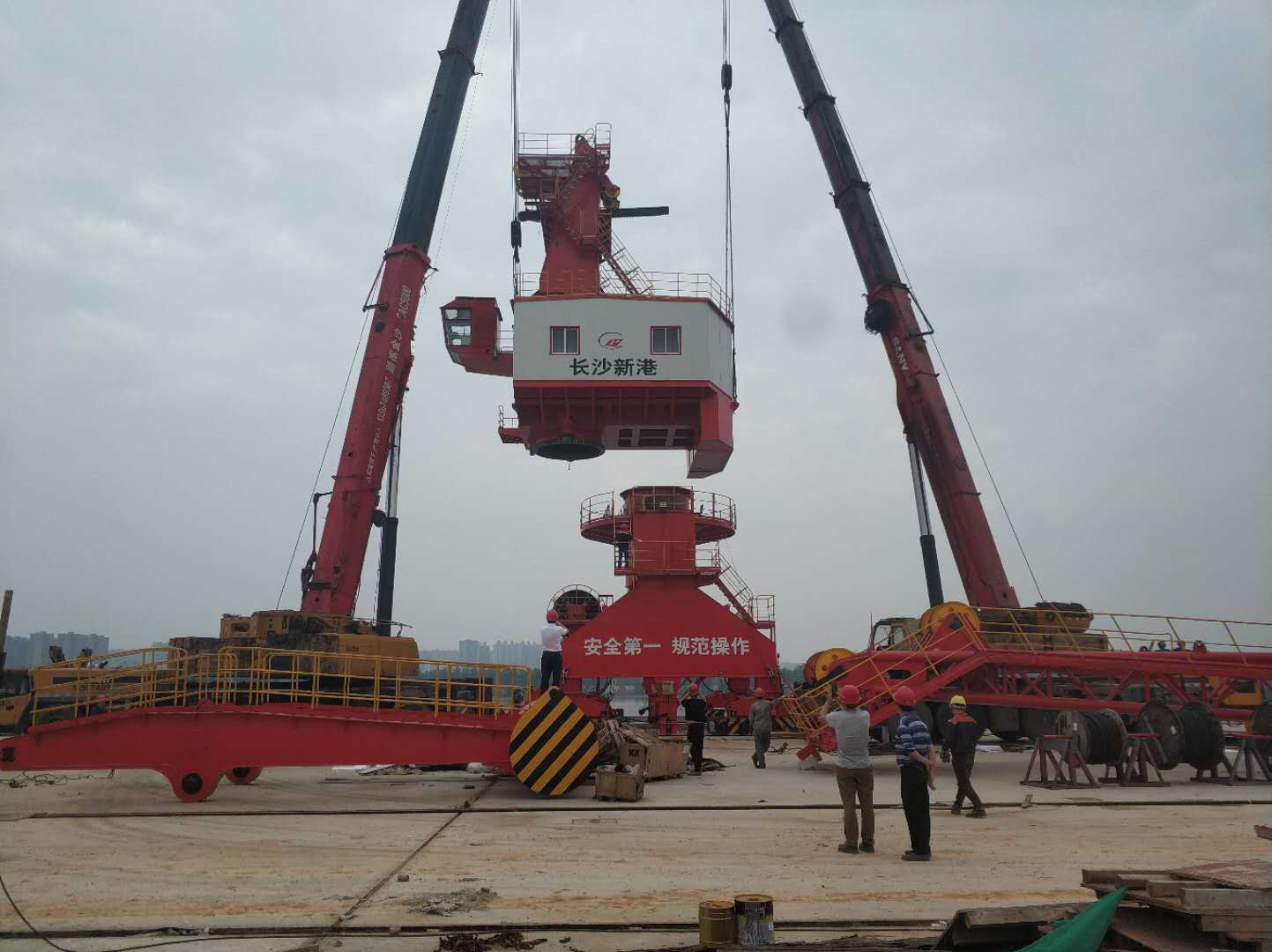 南片生產(chǎn)添助力 門座式起重機(jī)順利安裝 長沙港霞凝港區(qū)三期工程上游新建2000噸級(jí)(兼顧3000噸級(jí))多用途泊位2個(gè),滾裝泊位1個(gè)。滾裝泊位目前已完成土建實(shí)體、混凝土道路施工,配套鋼引橋制作安裝、躉船制安錨定及兩者的連接工作,已經(jīng)具備投產(chǎn)條件;多用途泊位主體工程已基本完成,正在進(jìn)行附屬工程掃尾工作。 長沙港霞凝港區(qū)三期工程上游多用途泊位計(jì)劃配置2臺(tái)門座式起重機(jī);3月上旬,湖南中鐵五新重工有限公司港機(jī)安裝隊(duì)開始安裝,經(jīng)過一個(gè)多月不懈努力,大車行走結(jié)構(gòu)、轉(zhuǎn)臺(tái)、臂架、圓通門架等都已現(xiàn)場(chǎng)組裝完成。5月4日、6日,25t-25m、45t-25m門座式起重機(jī)順利完成轉(zhuǎn)臺(tái)及臂架等上部結(jié)構(gòu)的合攏,主體結(jié)構(gòu)一次性吊裝成功。在設(shè)備構(gòu)件吊裝前,新港公司組織專家對(duì)吊裝方案的安全性進(jìn)行了專家論證,確?蚣艽a頭承受荷載不大于設(shè)計(jì)荷載,以保證機(jī)械設(shè)備吊裝安全。