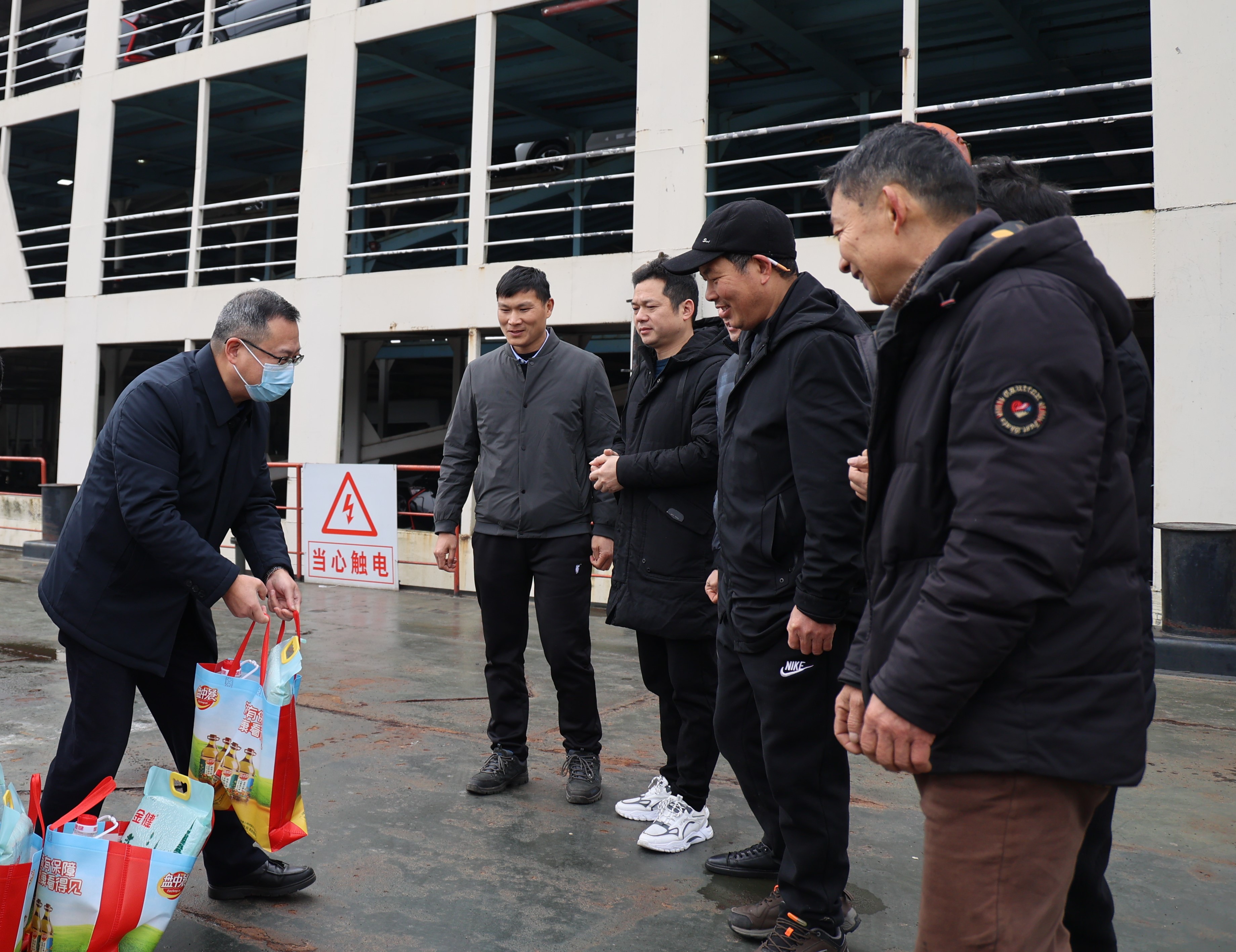春節(jié)將至,歲寒情深。船員作為一個特殊的職業(yè)群體,工作和生活在船舶上需面對惡劣氣候、封閉環(huán)境、緊張工作等情況,常年不能回家,新春佳節(jié)更難以與家人團聚。為了讓在港船舶在長沙港度過一個歡樂祥和的春節(jié),2022年1月30日,新港公司黨委副書記、總經(jīng)理辛華,黨委委員、紀委書記黃紅星及副總經(jīng)理鄭美洲帶領(lǐng)市場營銷部、生產(chǎn)運營部工作人員對已到港船舶進行春節(jié)前的親切慰問,并給予安全提醒。  聲聲問候顯真情,句句話語暖人心。船員們表示非常感謝來自新港公司的慰問和節(jié)日祝福,在平時的工作中已感受到了新港人的高素質(zhì)和專業(yè)化水平,節(jié)日期間更感受到了新港公司優(yōu)質(zhì)服務(wù)和人性化服務(wù),讓漂泊在外的船員們感受到了滿滿的關(guān)懷和溫暖。 |