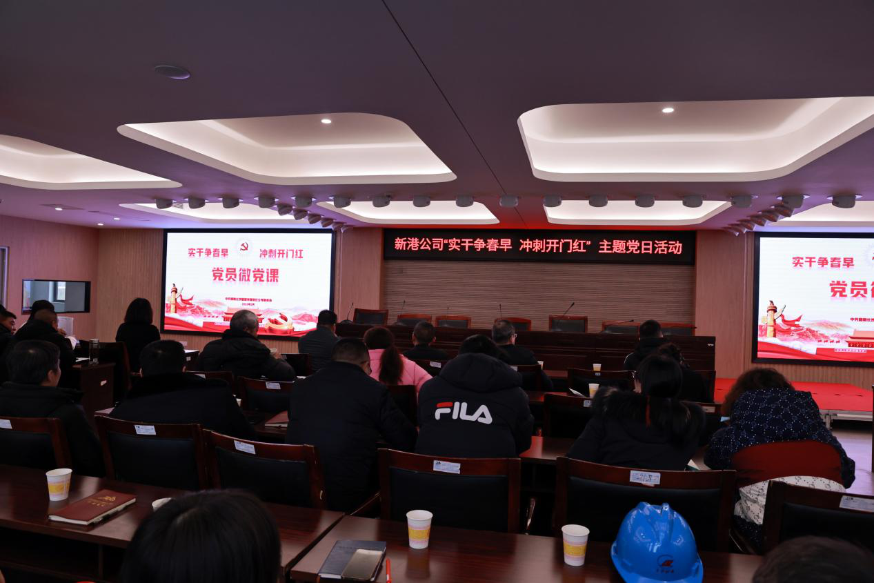 實干爭春早 沖刺開門紅 中共湖南長沙新港有限責任公司委員會主題黨日活動 為扎實擔當起學習宣傳貫徹黨的二十大精神排頭兵的光榮使命,教育引導廣大黨員干部從黨的二十大專題學習汲取精神力量,在新的一年里,進一步堅定理想信念,主動肩負時代重任,開啟新征程。2月17日上午,長沙交通集團新港公司開展學習貫徹黨的二十大精神“實干爭春早,沖刺開門紅”主題黨日活動,此次活動,以“微影片、微黨課、微實事、黨員教育培訓”等多種形式推動黨的二十大精神落地見效。公司黨委副書記、董事、總經(jīng)理辛華作宣講,班子成員、公司中層管理人員、各支部黨員共76人參加活動。 深學悟初心-【微影片】 全體黨員干部集中觀看2022年度湖南反腐警示片《忠誠與背叛》。通過觀看警示教育片,引導黨員上好廉潔教育“新年第一課”,教育全司廣大黨員干部面對誘惑要保持清醒的頭腦,自覺抵制各種腐敗現(xiàn)象的侵蝕,牢固樹立正確的人生觀、利益觀和權力觀,干干凈凈做事,老老實實做人。  篤行求實效-【微黨課】 學理論之思,踐初心之行。新港公司以“實干爭春早,沖刺開門紅”為主題,從七個黨支部里的推選黨員干部帶頭講,鼓勵黨員人人上臺講【微黨課】,突出“微”這個形式,聚焦“黨”這個靈魂,利用“課”這個載體,教育廣大黨員從不同層面、不同角度深刻領會黨的理論創(chuàng)新成果,以新思想、新觀念、新思路、新舉措,開創(chuàng)公司高質(zhì)量發(fā)展新局面。