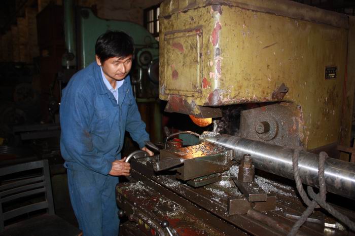 楊建安同志從來都是碰到越有難度的加工活,他越有興趣,越喜歡從中摸索,敢于接受任何技術(shù)上的挑戰(zhàn),這次也不例外。通過對需維修設(shè)備的了解和初步分析,他想出了最簡單、最快捷的拆裝方法,用最短的時間將已經(jīng)斷裂的傳動軸拆除了出來。他充足的干勁、熟練的操作都感染著在場所有的人。只見他認(rèn)真地挑選好材料毛坯,細(xì)致地磨好所需刀具,一絲不茍、聚精會神,干起活來。在他的精心操作下,經(jīng)過兩個多小時搶制,新的傳動軸加工出來了,且規(guī)格和標(biāo)準(zhǔn)都符合裝配要求,在場的所有人才放心地松了口氣。