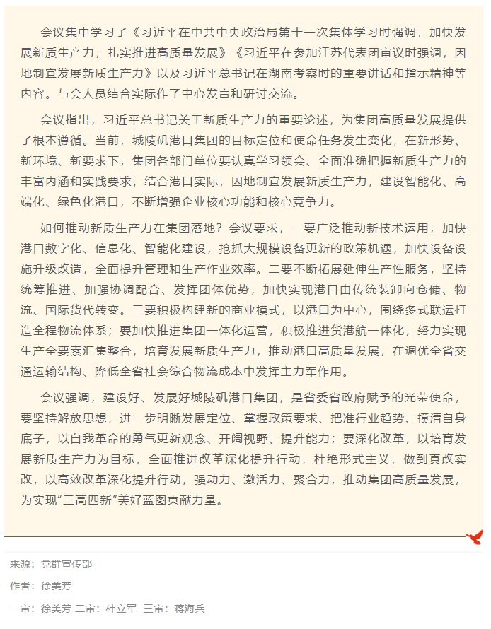 城陵磯港口集團(tuán)黨委中心組開展2024年第二次集體學(xué)習(xí)