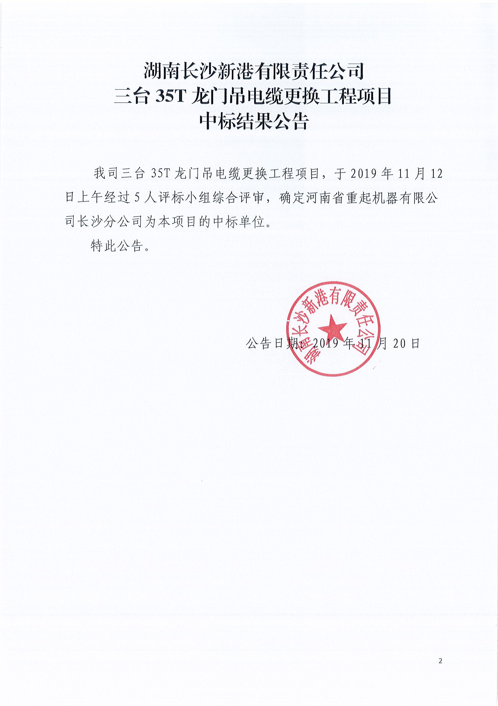 三臺(tái)35T龍門(mén)吊電纜更換工程項(xiàng)目中標(biāo)結(jié)果公告