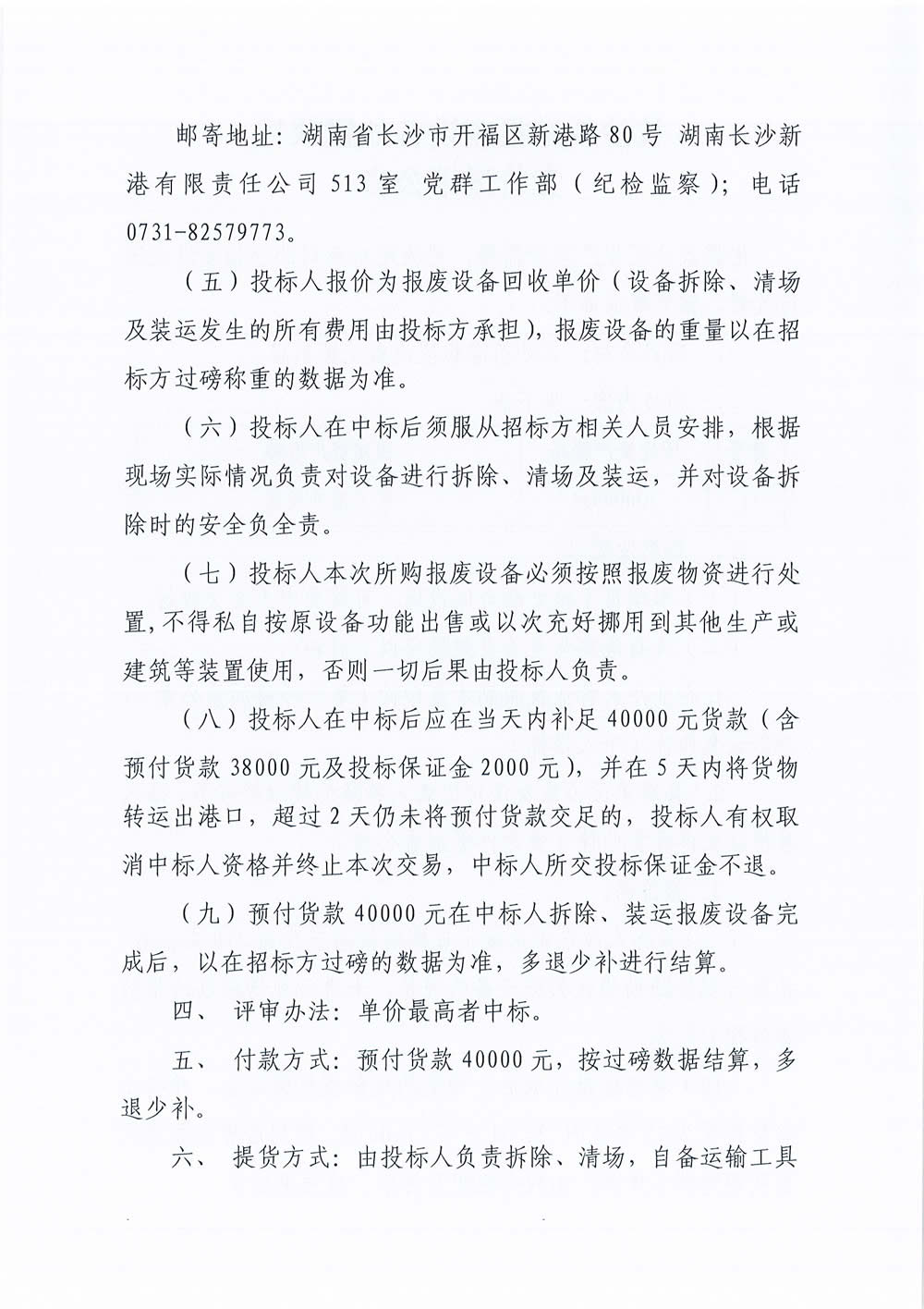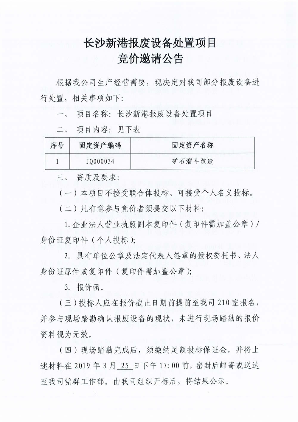 長沙新港報(bào)廢設(shè)備處置項(xiàng)目競(jìng)價(jià)邀請(qǐng)公告