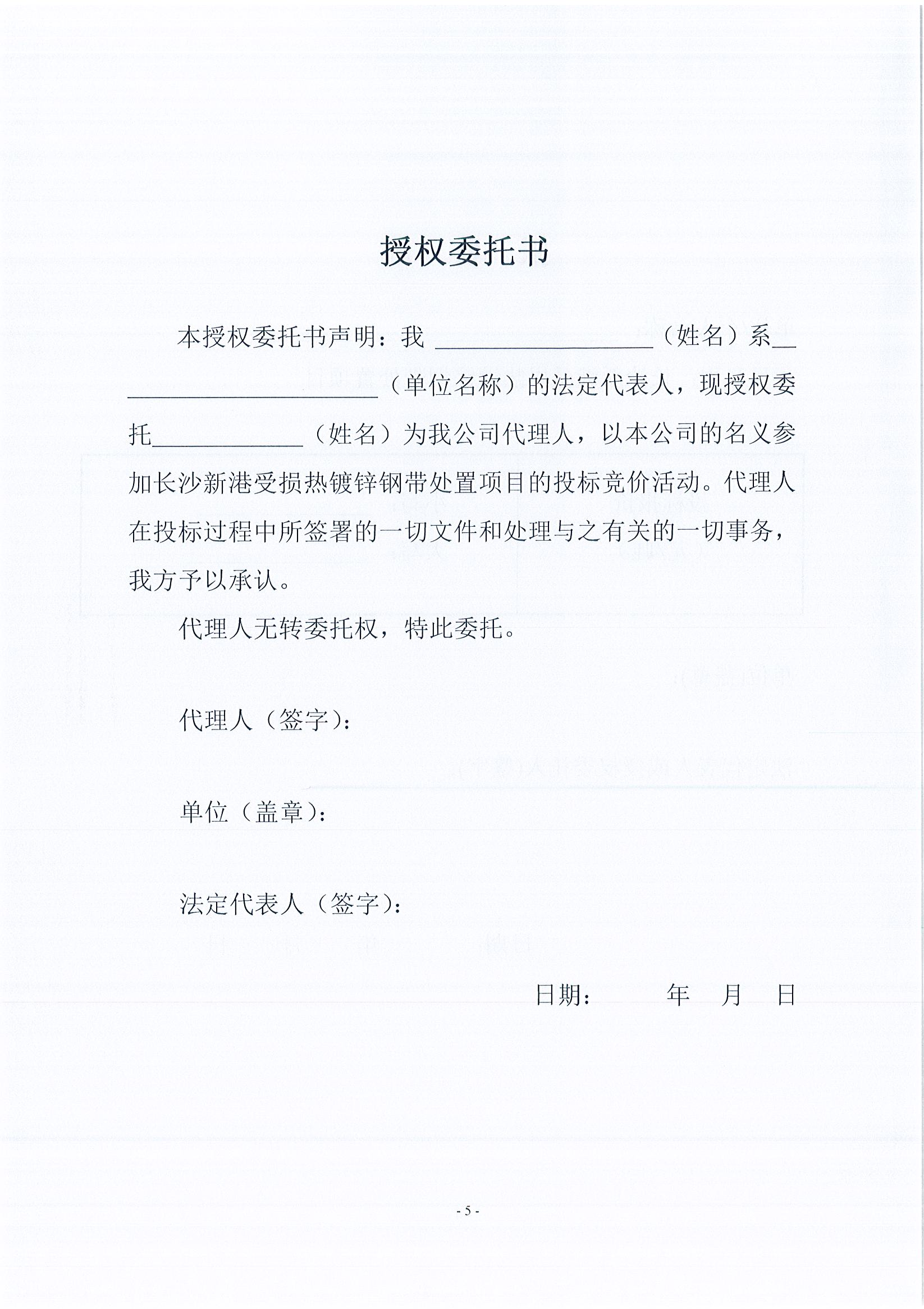 湖南長沙新港有限責任公司受損熱鍍鋼帶外置競價文件