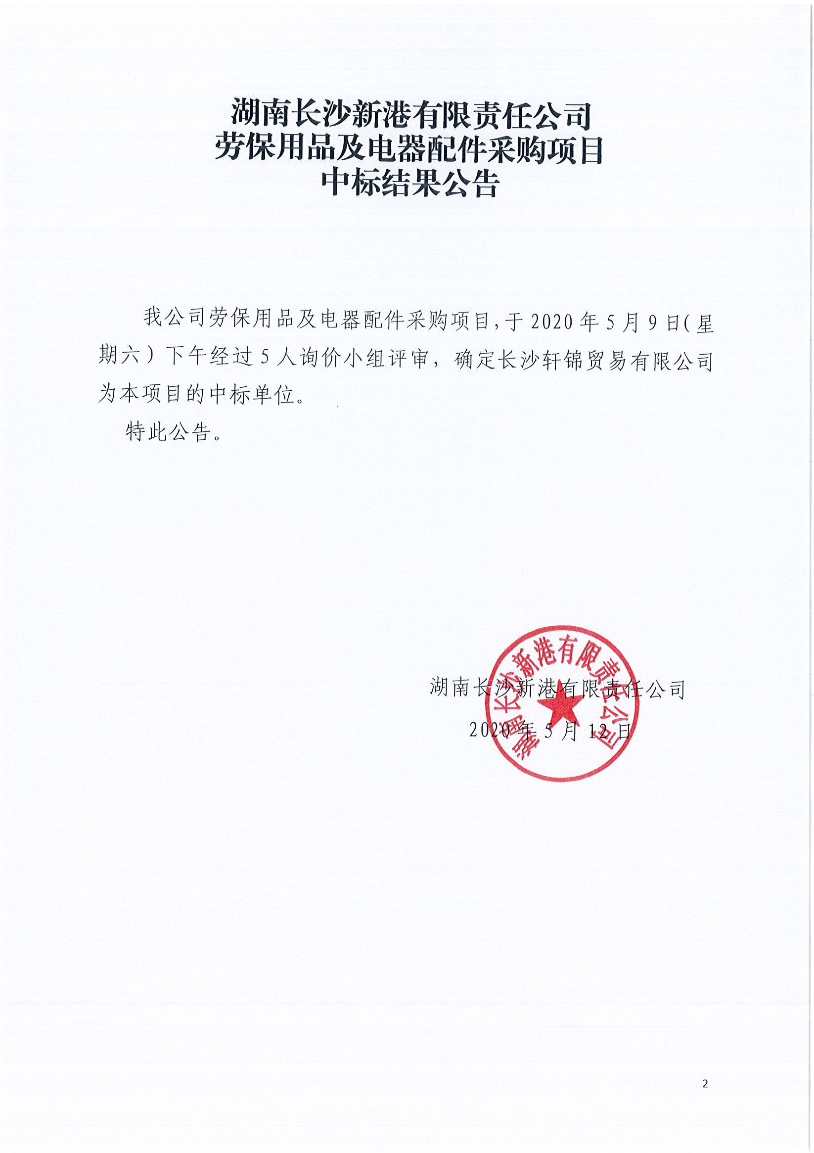 勞保用品及電器配件采購項目《中標結(jié)果公告》