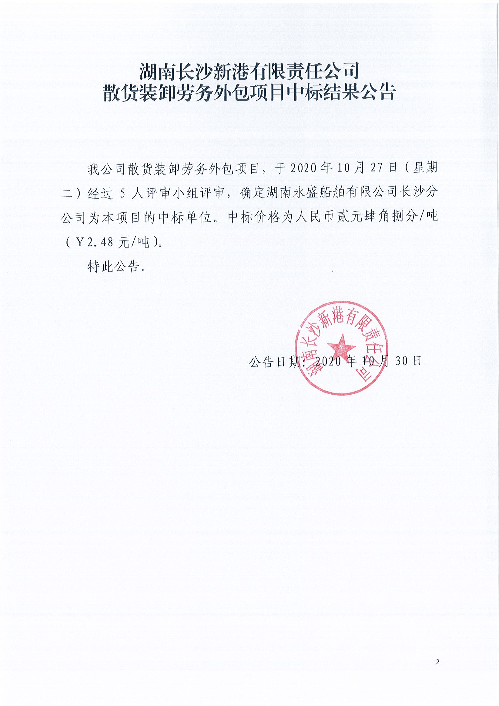 散貨裝卸勞務(wù)外包項目中標結(jié)果公告