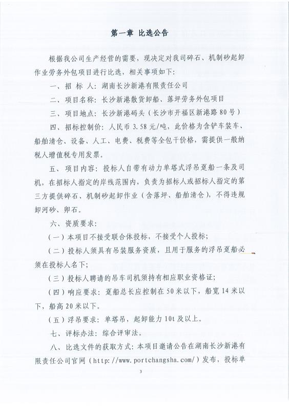 比選公告:長(zhǎng)沙新港散貨卸船、落坪勞務(wù)外包項(xiàng)目