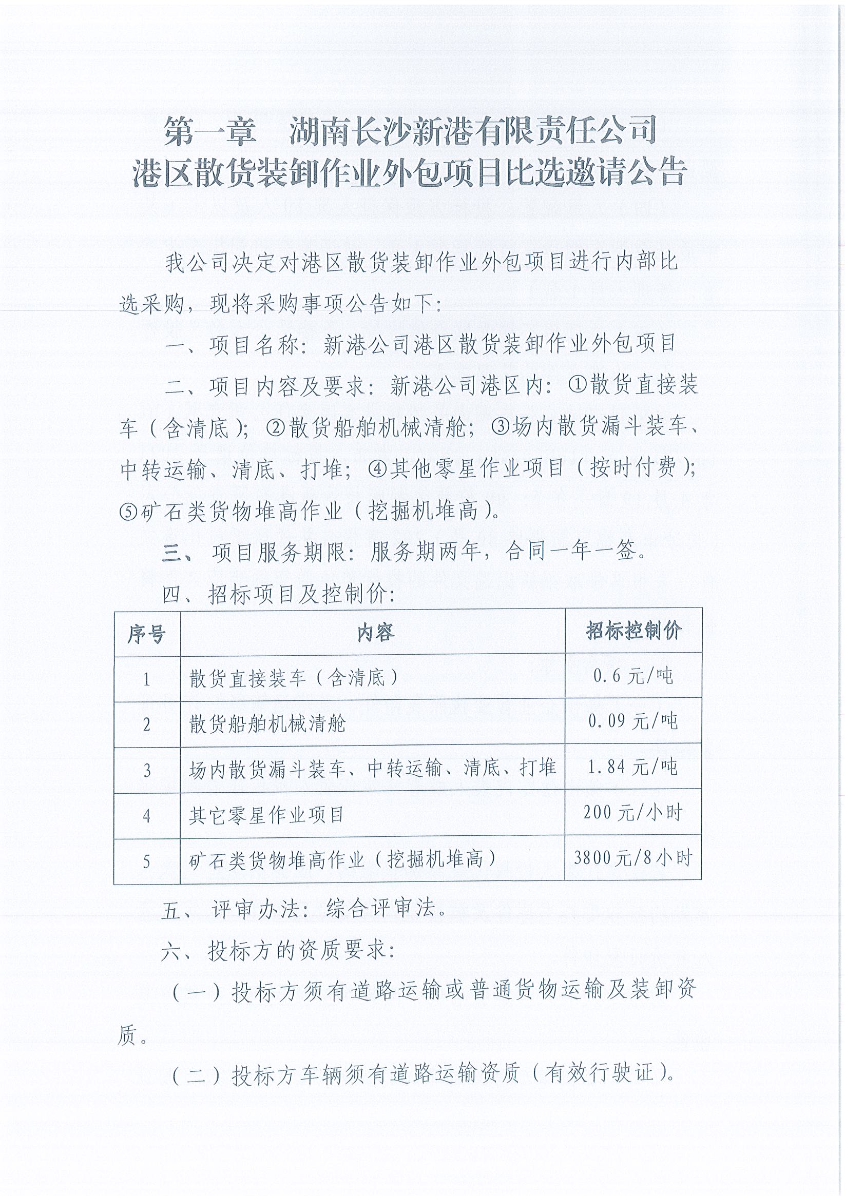 湖南長(zhǎng)沙新港有限責(zé)任公司港區(qū)散貨裝卸作業(yè)外包項(xiàng)目比選邀請(qǐng)公告