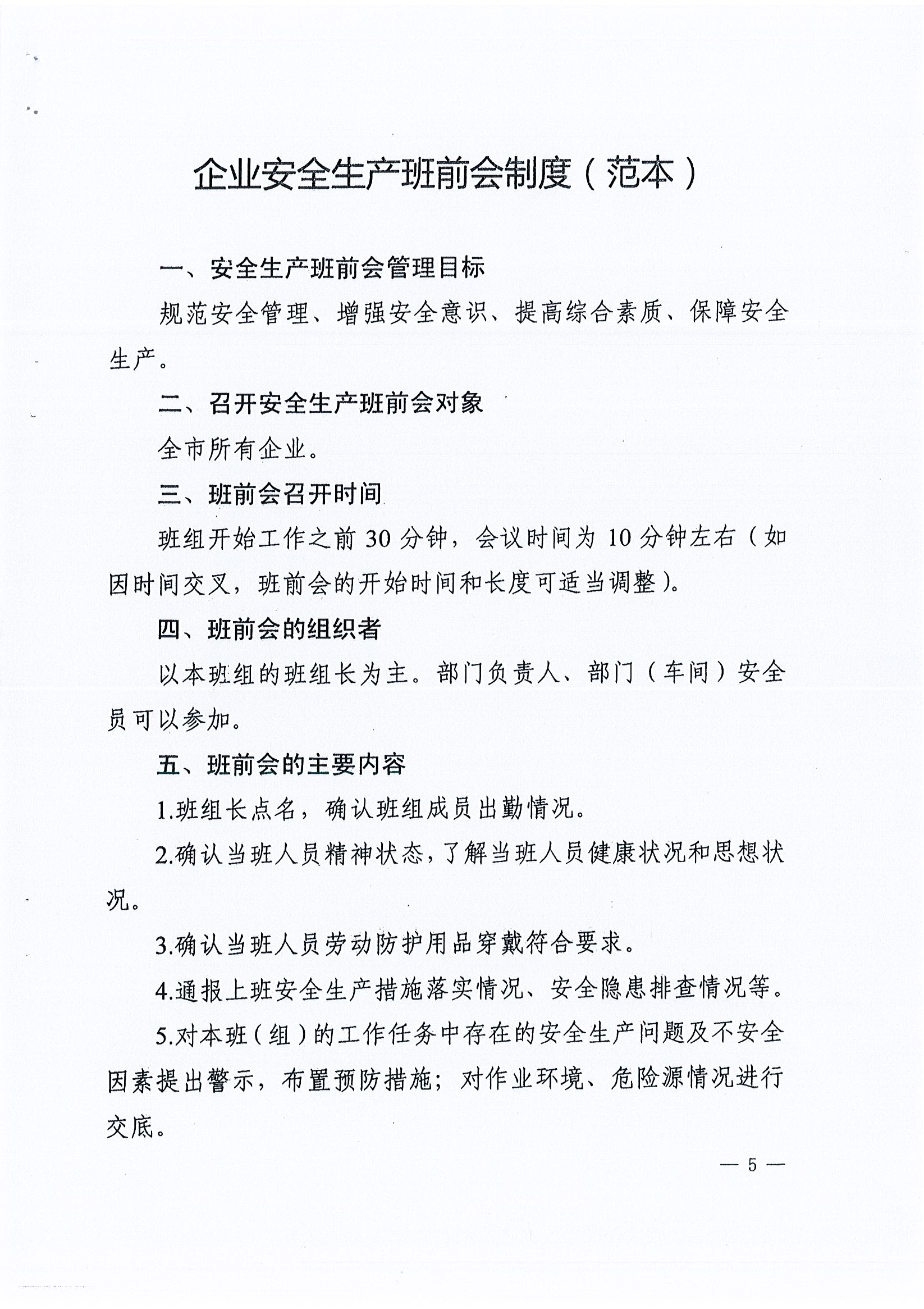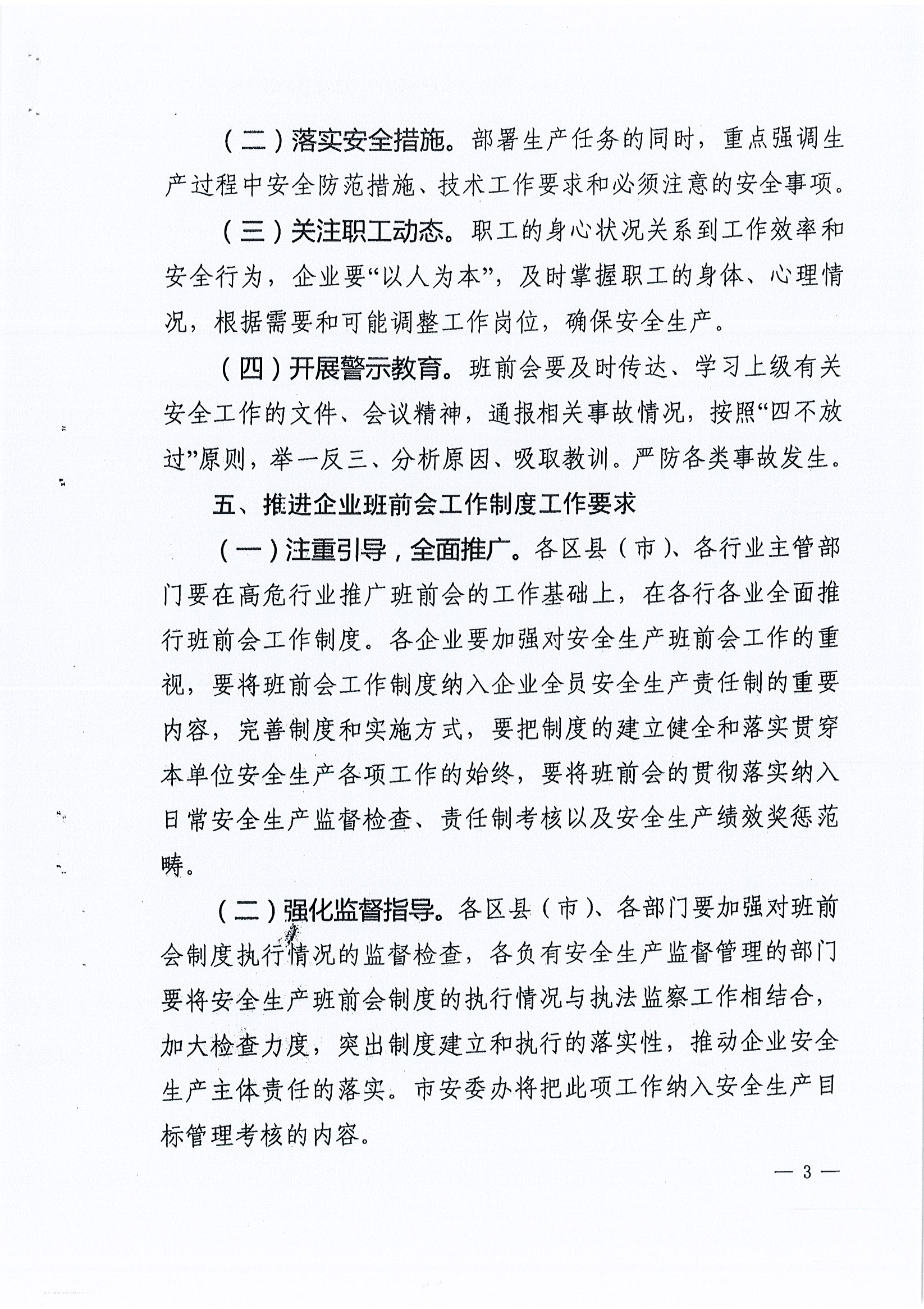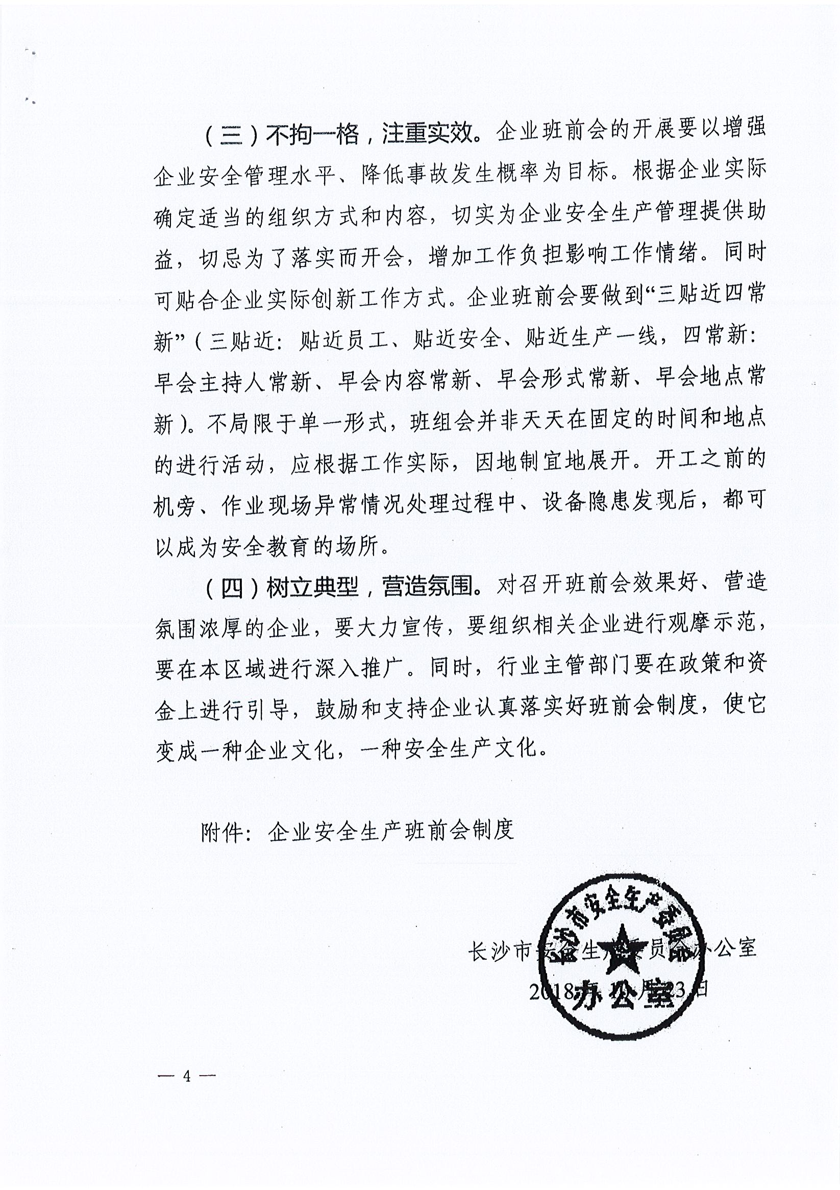 長沙市安全生產(chǎn)委員會辦公室關于在全市企業(yè)推進班前會工作制度的通知